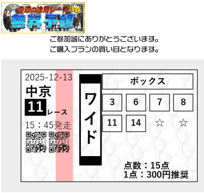 ※ 予想情報はあくまで参考情報であり、将来の的中や利益を保証するものではありません。