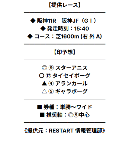 ※ 阪神ジュベナイルフィリーズ無料予想的中