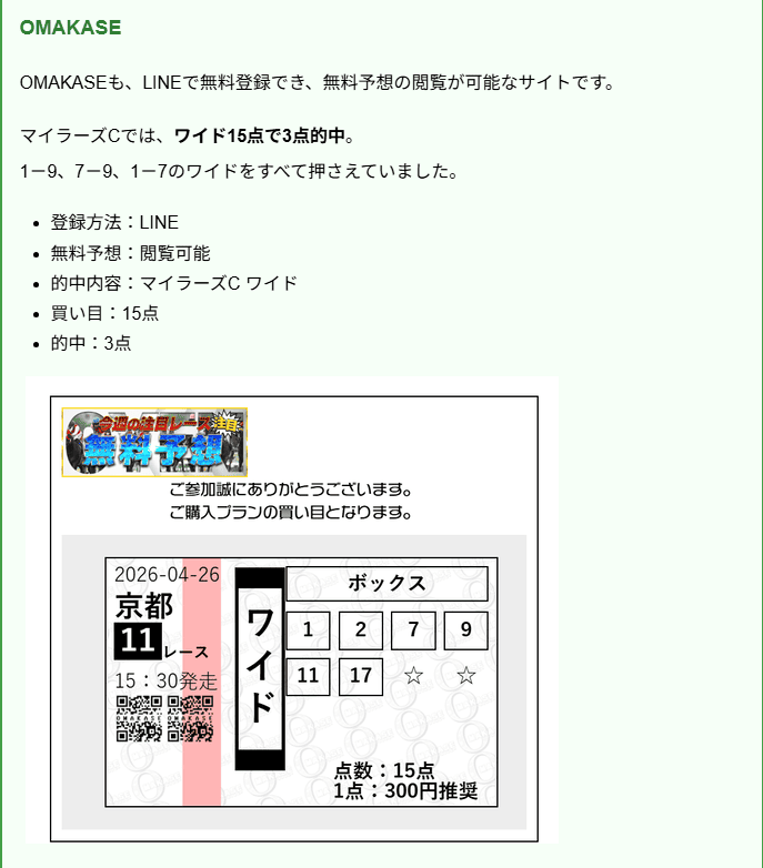 掲載している無料予想・無料情報は、公開日時や内容が変更される場合があります。